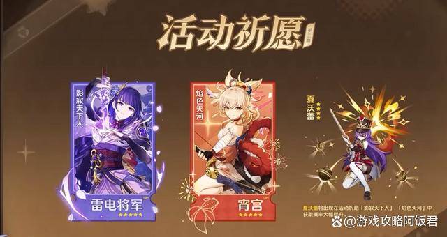 下半的雷神和宵宫也都是很好用的角色,前者属于七神之一,本身技能出色强度也高,完全是可以抽取的。后者宵宫虽然有一定的争议,但是我个人觉得宵宫上手难度低,爆发伤害也不错的,还是可以抽取的,只是优先级略微低一点。