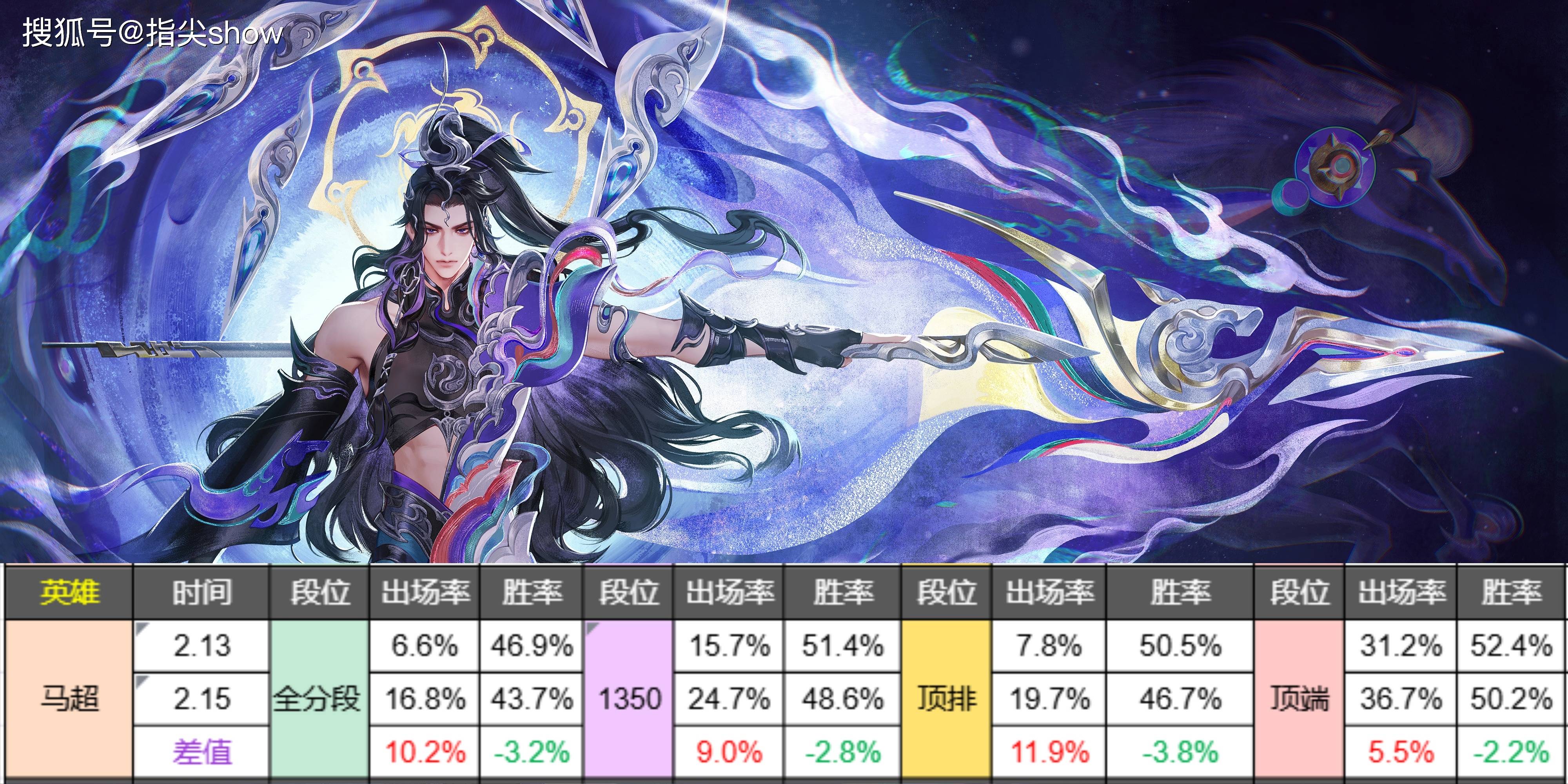 原因也很容易理解,马超这英雄本身就不是普通玩家能驾驭的,虽然顶端局是顶流英雄,但前提是你得能掌握,在顶端局热度上涨之后尚且有胜率下降的趋势,更何况很难驾驭这个英雄的排位呢。