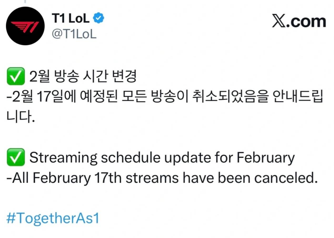 目前T1已经正式进入紧急状态,取消了选手原定于17日的直播安排,开始加紧训练了。