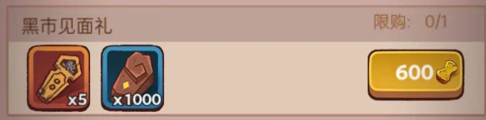 和上面差不多,都是招募令+资源。5个招募令和1000精铁在黑市总共值1910金砖,是现在黑市见面礼的3倍多点。