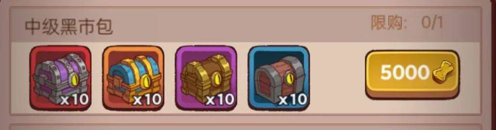 搞宝箱=提升得快。那宝箱自然成为重中之重,所以优先中级黑市包,来获取宝箱。争取多一轮就多一大步提升。