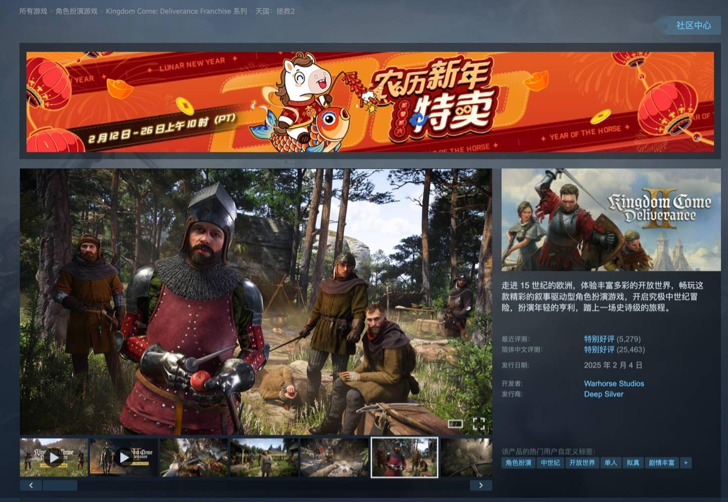 公开信息显示,《天国:拯救 2》于去年 2 月发售,在 Steam 国区定价为 228 元,好评率 94%“特别好评”,目前全球累计销量超过 500 万份,IT之家附游戏 Steam 地址(https://store.steampowered.com/app/1771300/2/)。