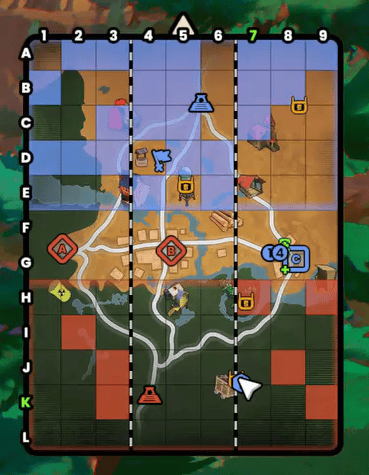 在双方阵地中间类似“楚河汉界”的位置,有三座雷达塔。雷达塔周边存活玩家数较多的一方可以占据这座塔,提供的功能包括恢复玩家体力、让玩家可以从基地直接传送到这座塔附近,以及最重要的:自动搜寻敌方阵营旗子的位置,在地图上逐一排除没有插旗的地块。