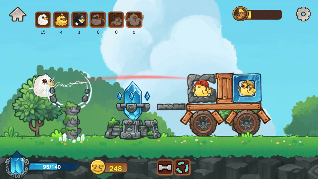 《萌禽争霸:鸡飞弹打》是一款画风 Q 萌、极具策略深度的物理弹射防守游戏。在这颗被遗忘的“原羽星球”上,魔法与科技的碰撞引发了史无前例的物种战争。玩家将操作身怀“鸭力”(魔法)的鸭鸭英雄,利用远古图腾作为助推器,横跨六大极端地貌,对抗机械化的小鸡军团。
