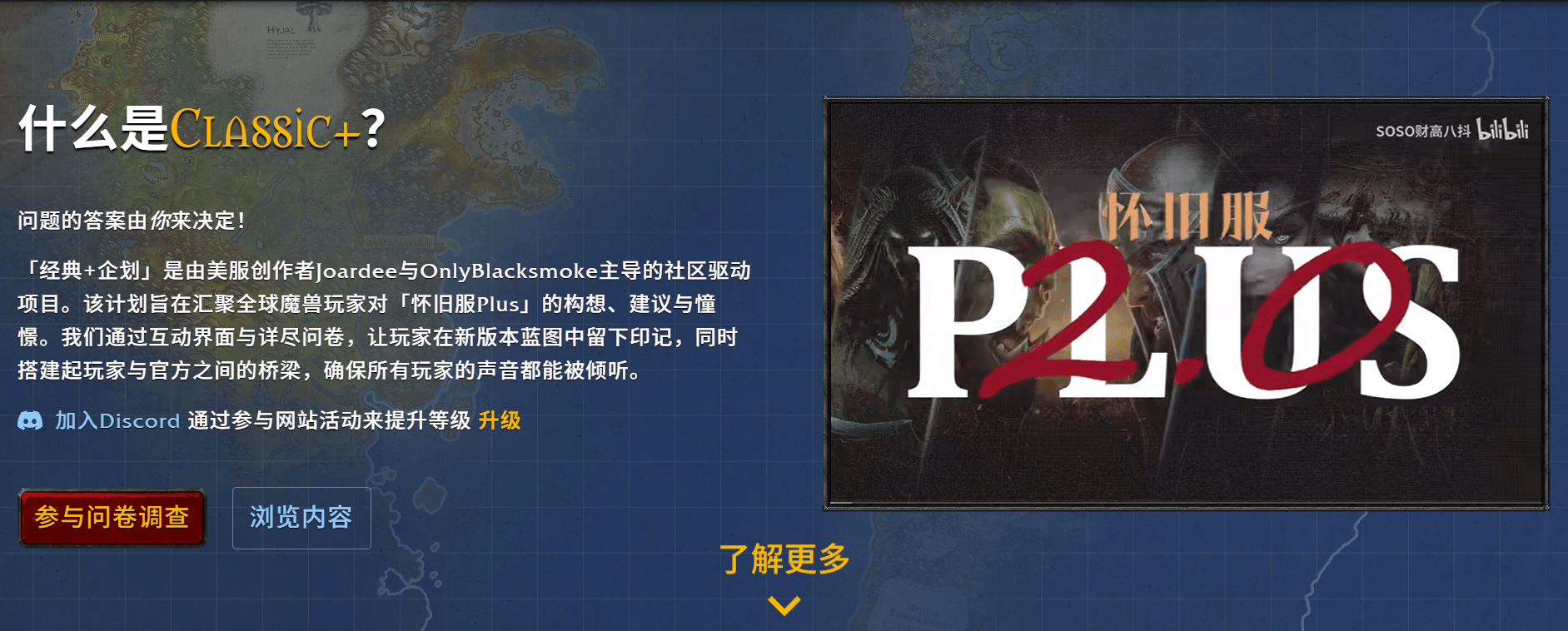 “经典+企划”(The Classic+ Project)网站由知名魔兽内容创作者Joardee在早些时候创建,邀请玩家参与调查,讨论他们对于新的《魔兽世界》60怀旧服(通常被认为是Plus2.0)的构想。现在结果出炉,有超过3.5万名玩家参与投票,选出了他们希望见到及不想见到的内容。