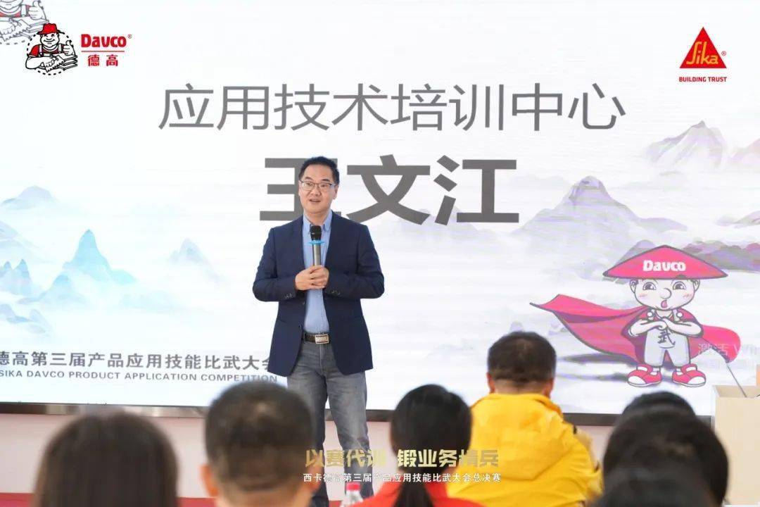 西卡德高全国应用技术培训中心王文江总监、西卡德高专卖店战略发展事业部潘峰总监亲临现场,为参赛选手加油打气,并见证了他们从产品开盖、搅拌、胶浆批刮上墙及熟练使用工具的全流程竞技。