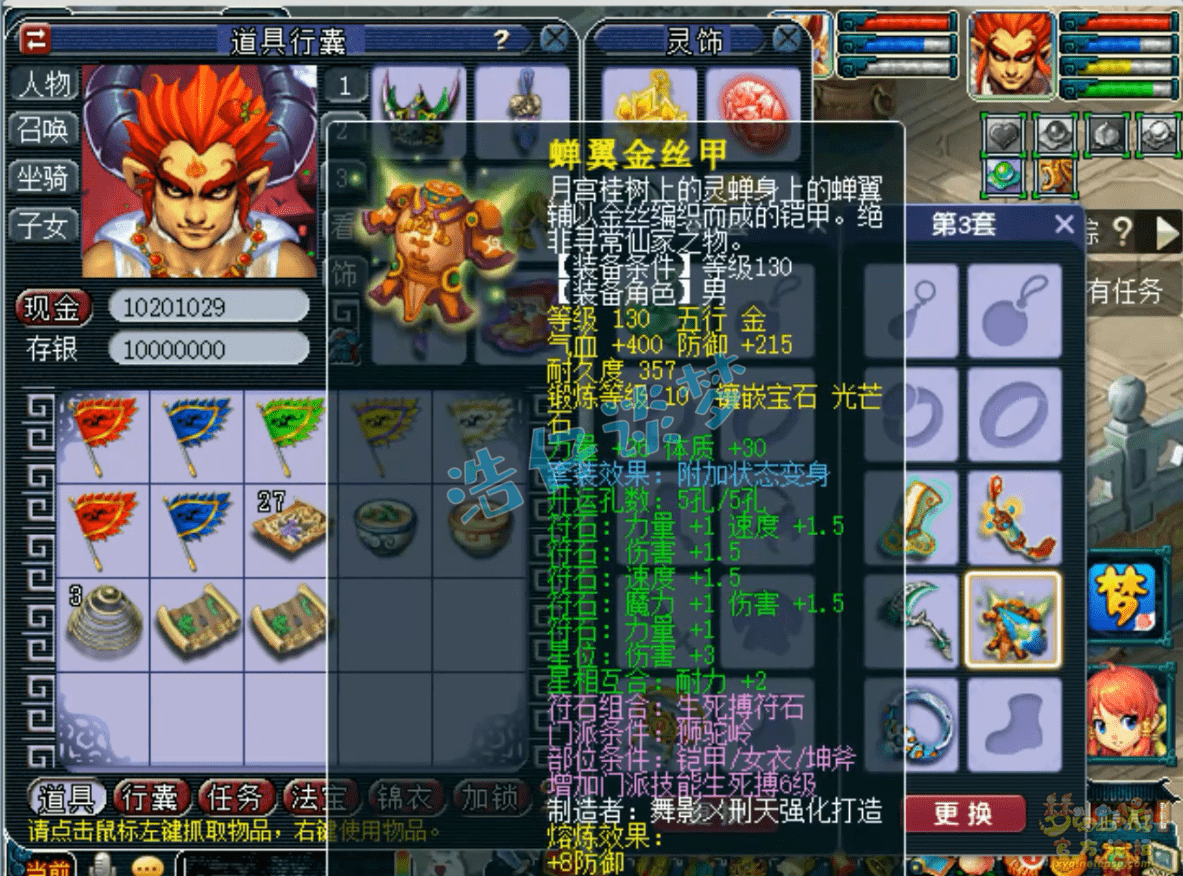 130级变身套铠甲,力体双加56,打了10锻光芒石!