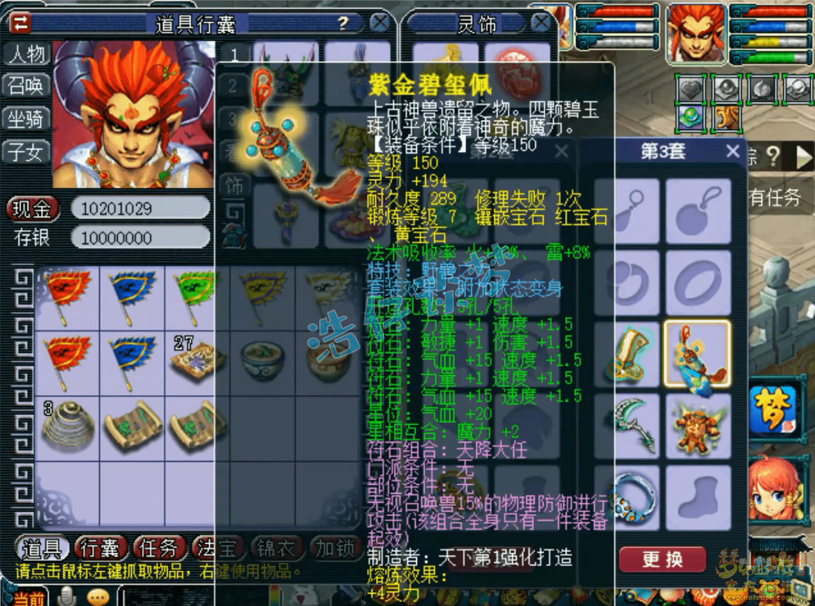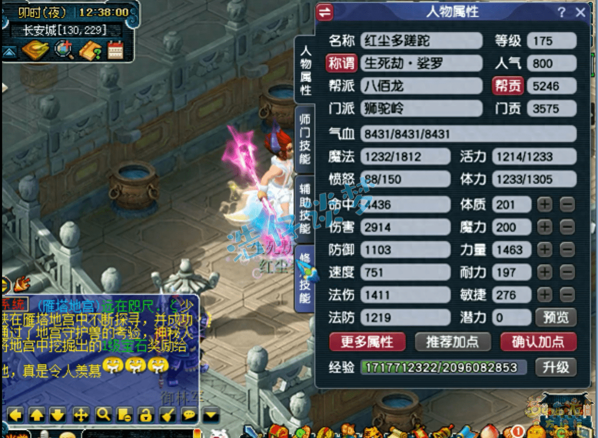 175级狮驼岭没打临时符的面板属性,打符带神器能有3200左右的伤害,打区内帮战完全足够了!