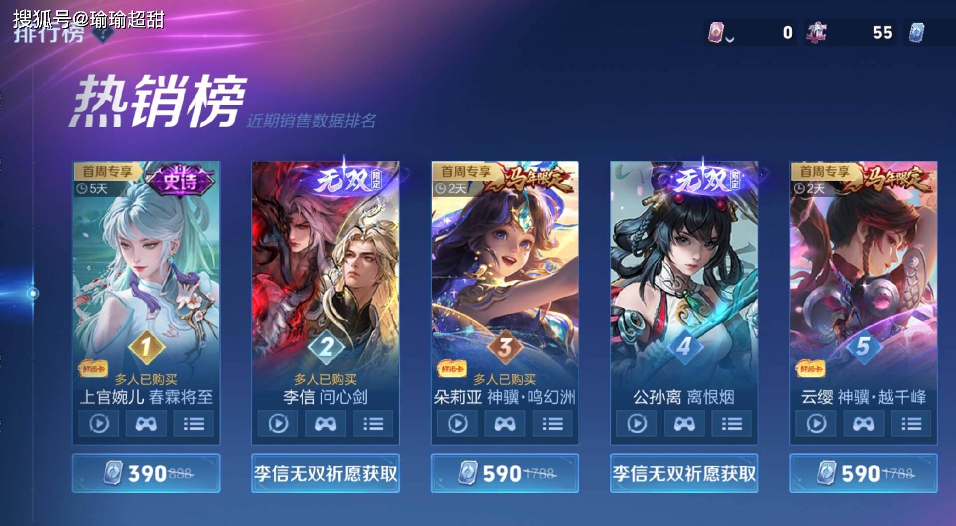 从这个数据来看,我这个观点应该是对的,因为好看的皮肤会更受欢迎,我们可以看一下这前五名的皮肤,有四款都是女英雄的皮肤,除了李信的皮肤之外,其他几位都是女角色。