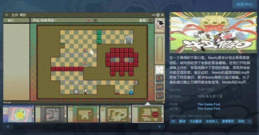 今日(8月17日),独立益智平台游戏《牛马假日》Steam页面公布,2026年5月1日发售,游戏支持简繁体中文,感兴趣的玩家可以进入商店页面。