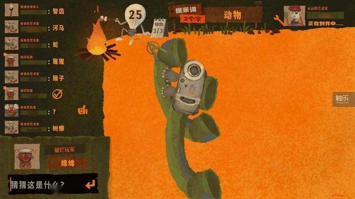 在多人模式中,游戏分为3轮,6名玩家轮番上阵当“破烂艺术家”。1名玩家在画框中拼图,另外5名玩家猜。随着时间推进,系统会提示物品种类及字数,玩家猜对答案会提示正确,但谜底仍会对其他玩家隐藏。