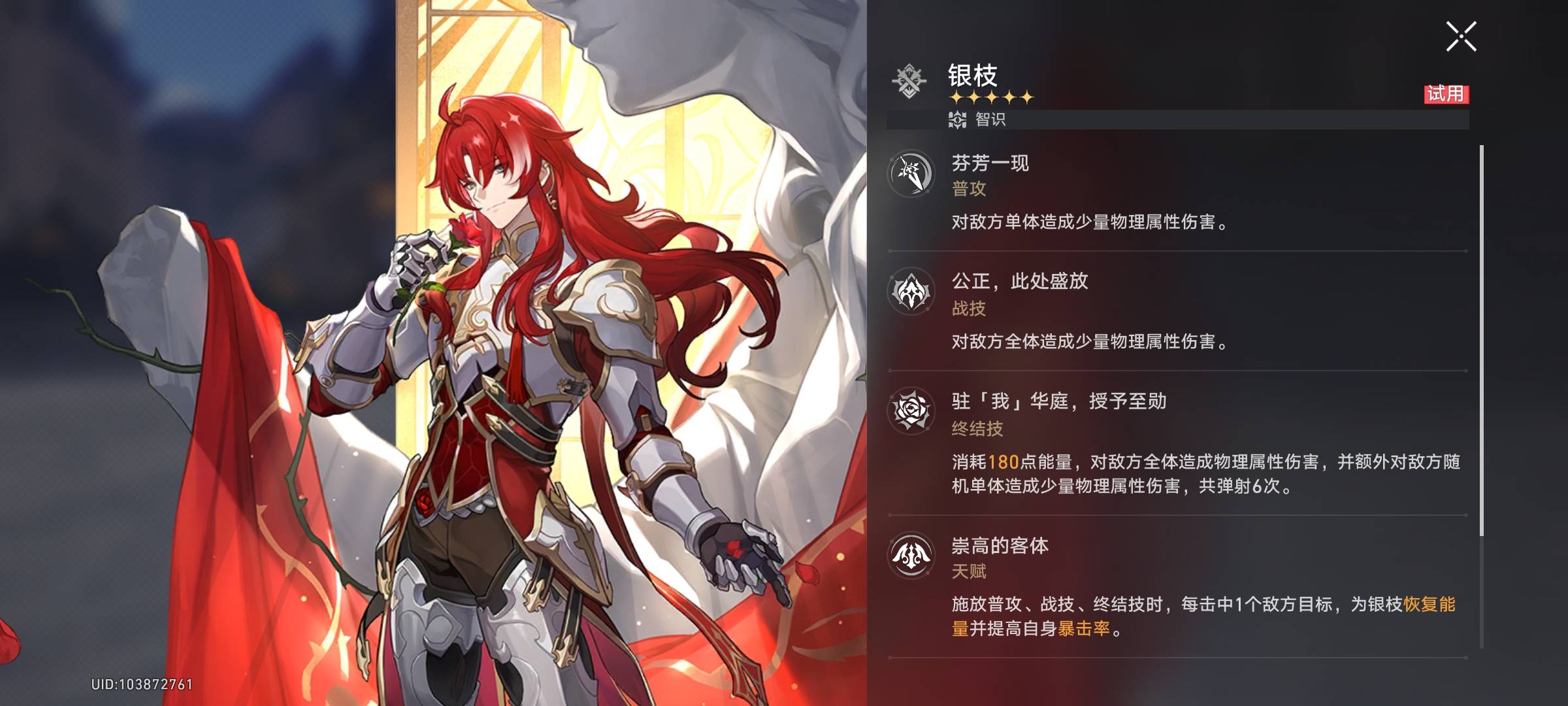 大家好,我是boyue,本篇来说下崩铁里银枝的培养攻略,这位优雅的纯美骑士,在试用中就展示出了强大的aoe战力,也有着对单输出能力,很难不心动啊。