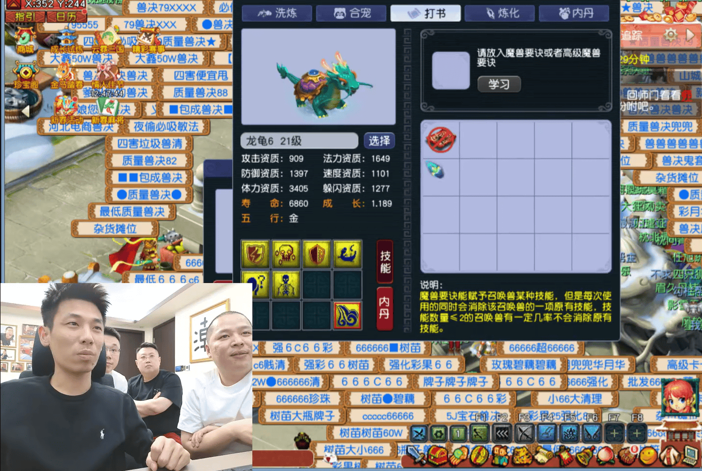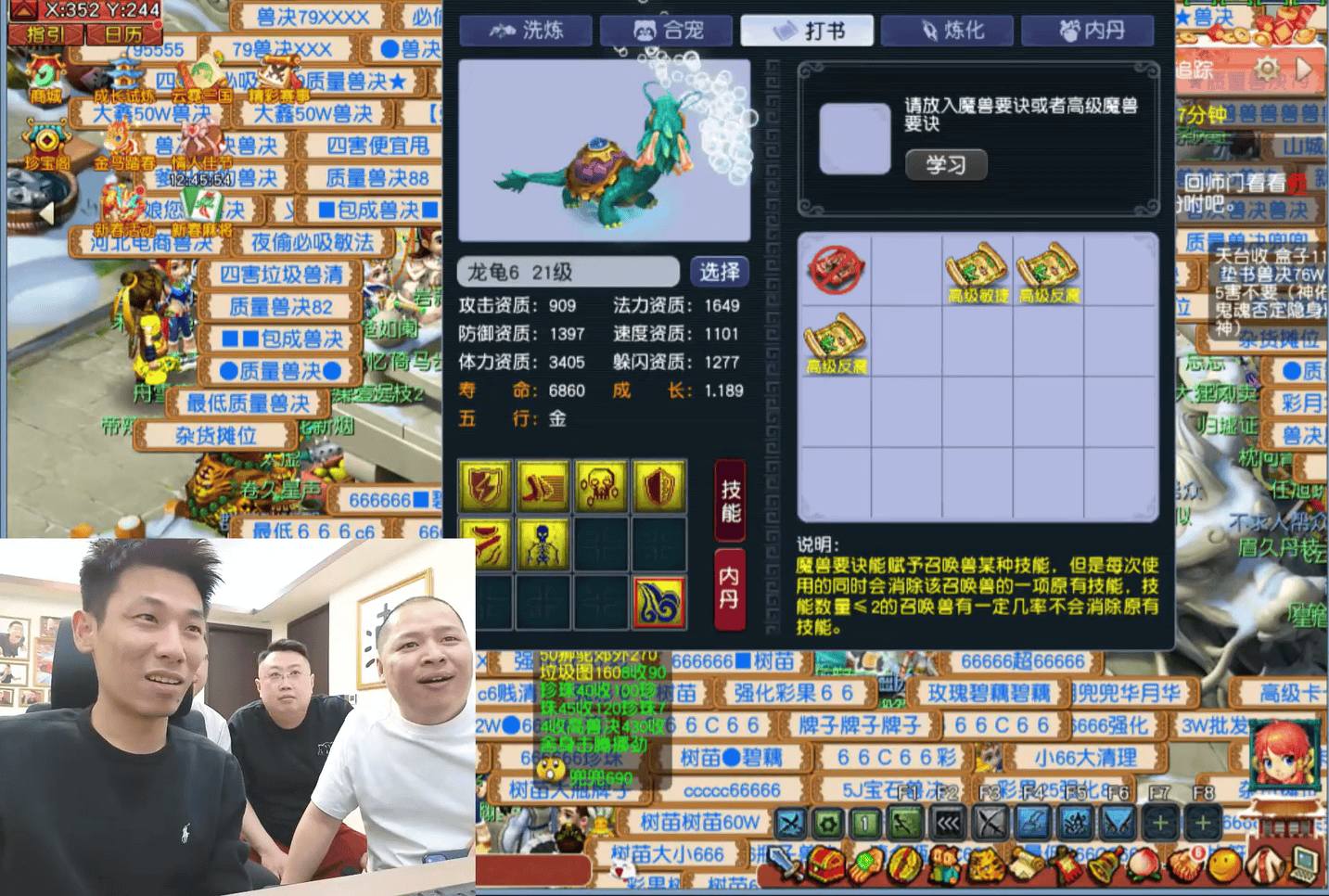昨天,旭旭宝宝在炼妖结束后,开始给一只6技能死亡法防龙龟打书。