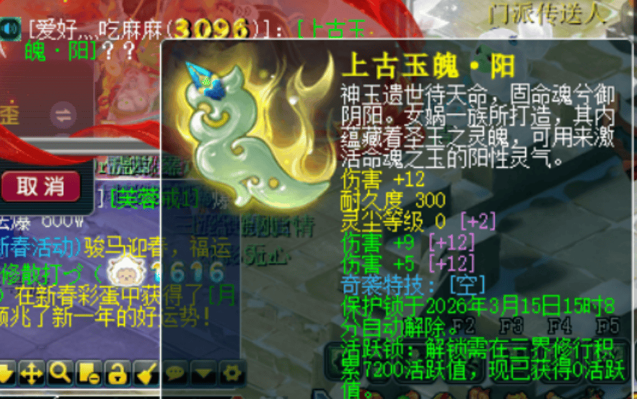 近日,一位玩家通过传音分享了自己的跑玉喜报——他开出了一枚三伤害阳玉魄。这枚玉魄算上天生的2级灵尘后基础伤害达50点,若打满15级灵尘,总伤害属性可达230点,相当于28锻红玛瑙的加成。