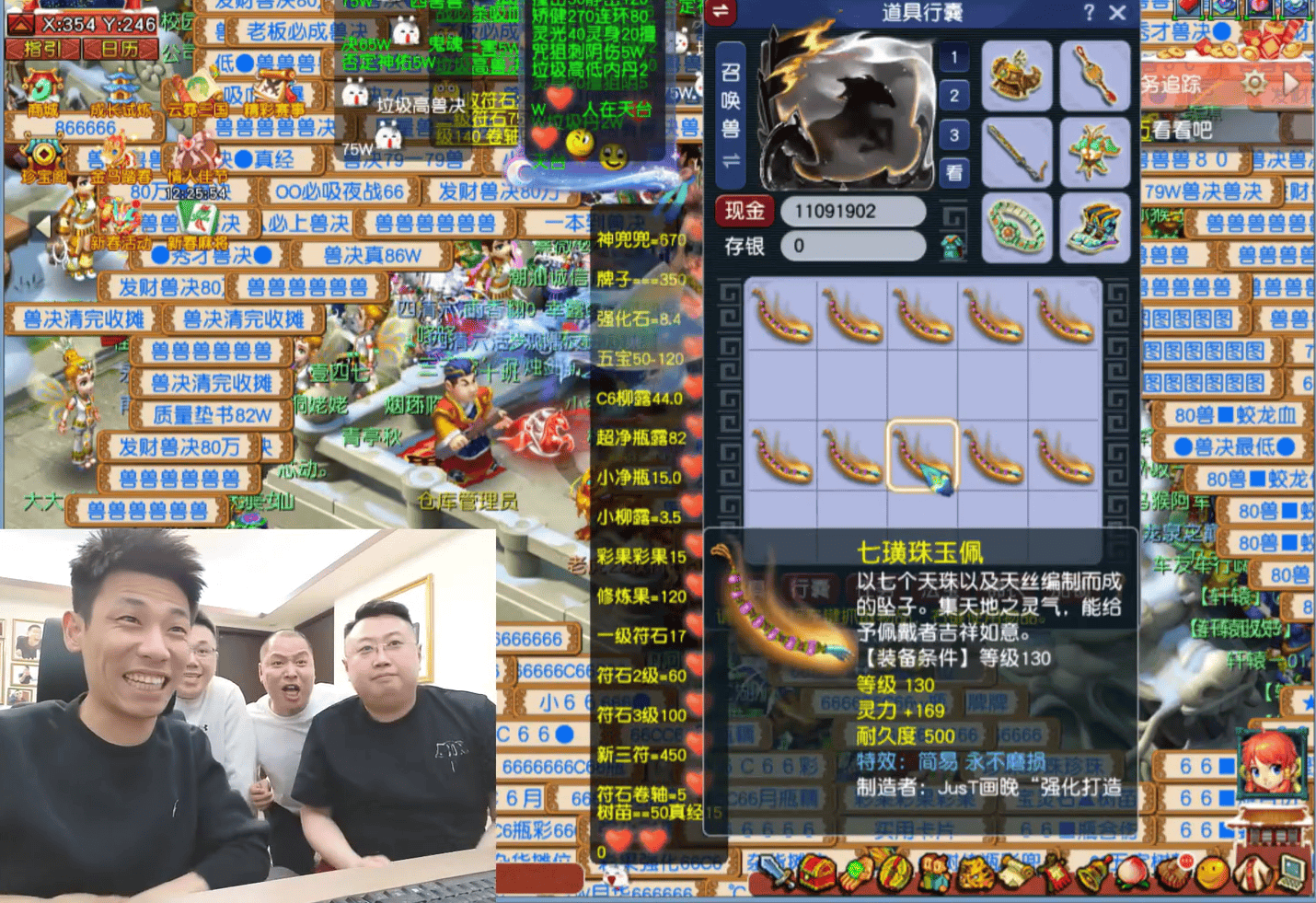 紧接着是紧张刺激的鉴定环节,助播团初九立下大功——一条130级简易不磨项链惊艳出炉。