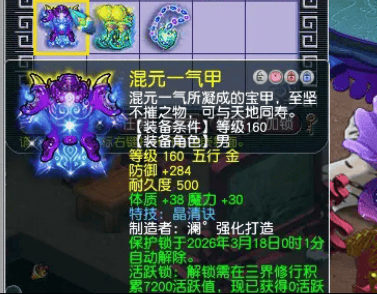 昨天凌晨,一名少侠通过鉴定160级装备,成功收获一件初防284且体魔双加68的晶清铠甲。这件装备具备高属性+PK必带大特技的高端组合,足以问鼎全服第一法系晶清铠甲的宝座,非常适合女魃、魔王等法系门派!