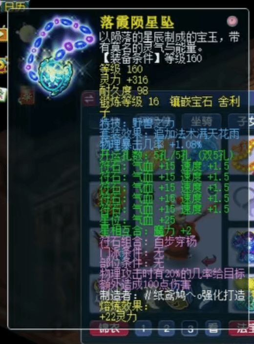 新入手的这条项链,相较原装备仅高出5点灵力与0.02%物暴几率。可以说,顶尖老板的装备更新,往往是以毫厘之差计算——而正是这些细微之处的精益求精,往往是决定胜负的关键之处。
