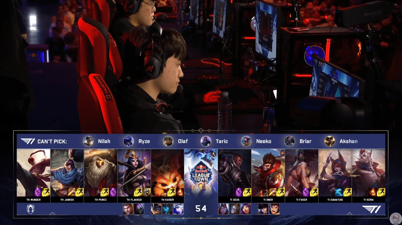 欧洲TH刚刚在转会期组建的银河战舰全员出战,他们拥有上单Wunder,打野Jankos,中单Caps,下路也是前G2的Flakked以及明星辅助选手Kaiser。这套阵容是TH加入LEC联盟之后,第二年准备打出点名堂的新阵容,也是下了不少本钱的全明星队伍了。今天在红牛杯面对T1也是全员出战,可以说就是欧洲LEC下赛季能力不错的队伍和T1的直接对决,虽然只是Bo1,只是娱乐表演赛,但显然大家都很关注。