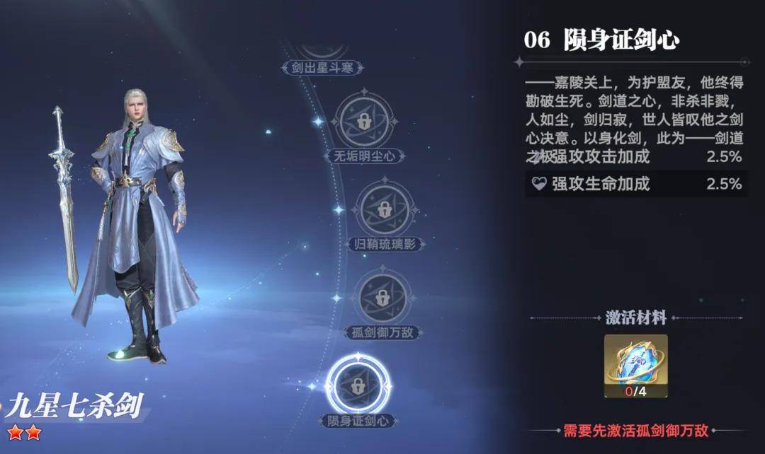 接着有了这个七杀剑心道具之后,咱们便可以激活尘心的命轨系统了,当然全新的尘心也会和老版本尘心有不太一致的外表,其中最大的区别就是这个九星七杀剑变为了九曜星魂剑,不过有关尘心自身的这个造型改变倒也没啥。