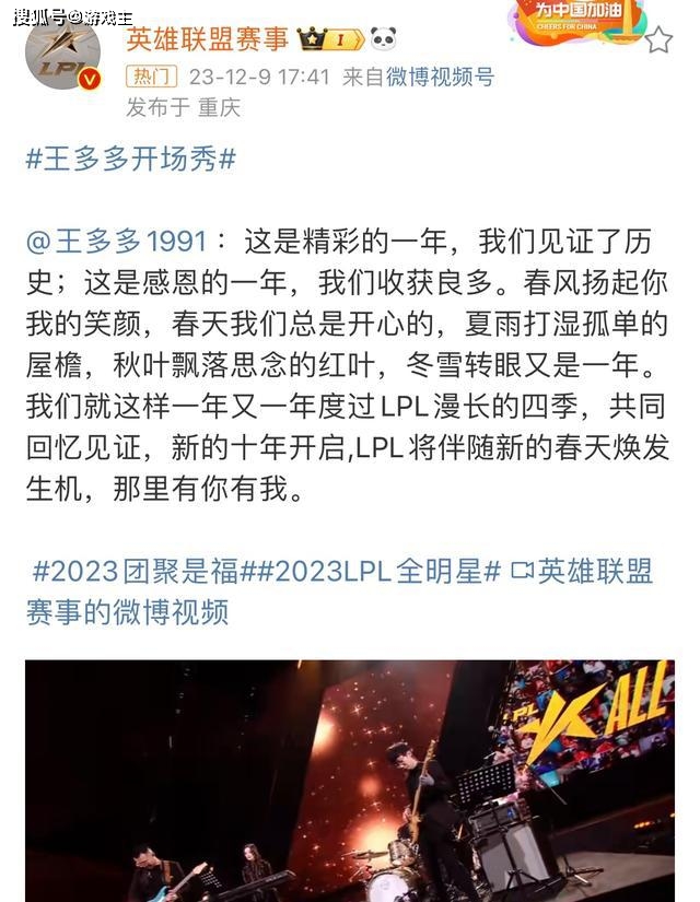 让我们来欣赏一下他的开场白,这是精彩的一年,我们见证了历史;这是感恩的一年,我们收获良多。春风扬起你我的笑颜,春天我们总是开心的,夏雨打湿孤单的屋檐,秋叶飘落思念的红叶,冬雪转眼又是一年。我们就这样一年又一年度过LPL漫长的四季,共同回忆见证,新的十年开启,LPL将伴随新的春天焕发生机,那里有你有我。