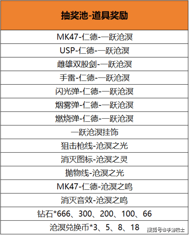 我们直接来看本期一跃沧溟夺宝活动的抽奖奖池,CFer可点击下图详细查阅: