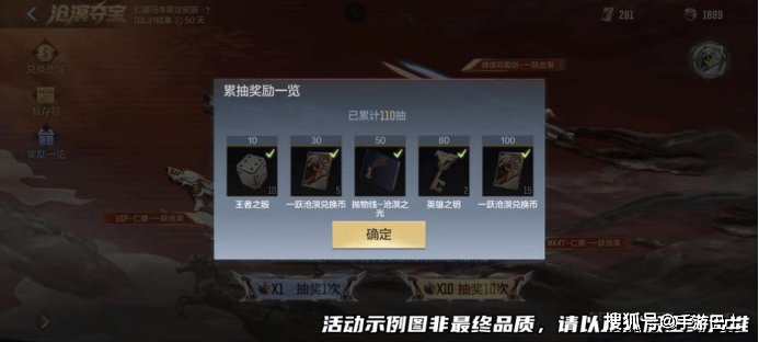 该活动使用一跃沧溟夺宝币进行抽奖,有想法试试水的看官可在限时CFM币活动页面花费60春节限时CFM币兑换一跃沧溟夺宝币x10。本次夺宝活动形式与王者近战夺宝相似,每10抽会触发2个特殊奖池,特殊奖励2选1。