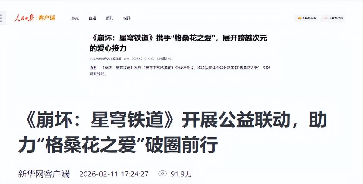 说起来,虽然这是崩铁新春开年第一夸,但其实在前不久,崩铁就被点赞过。在崩铁发布的公益纪录片《星穹下的格桑花》中,制作组借助游戏IP影响力,助力儿童健康公益的行为,受到了人民日报、新华网的带头点赞。