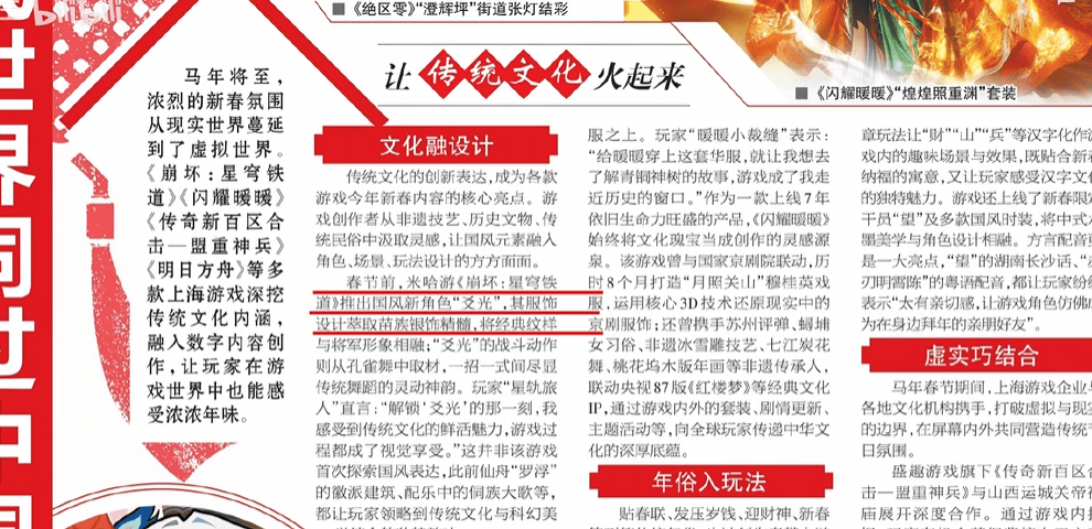 原创 开年第一夸!崩铁亮相新民晚报,爻光被权威点名称赞
