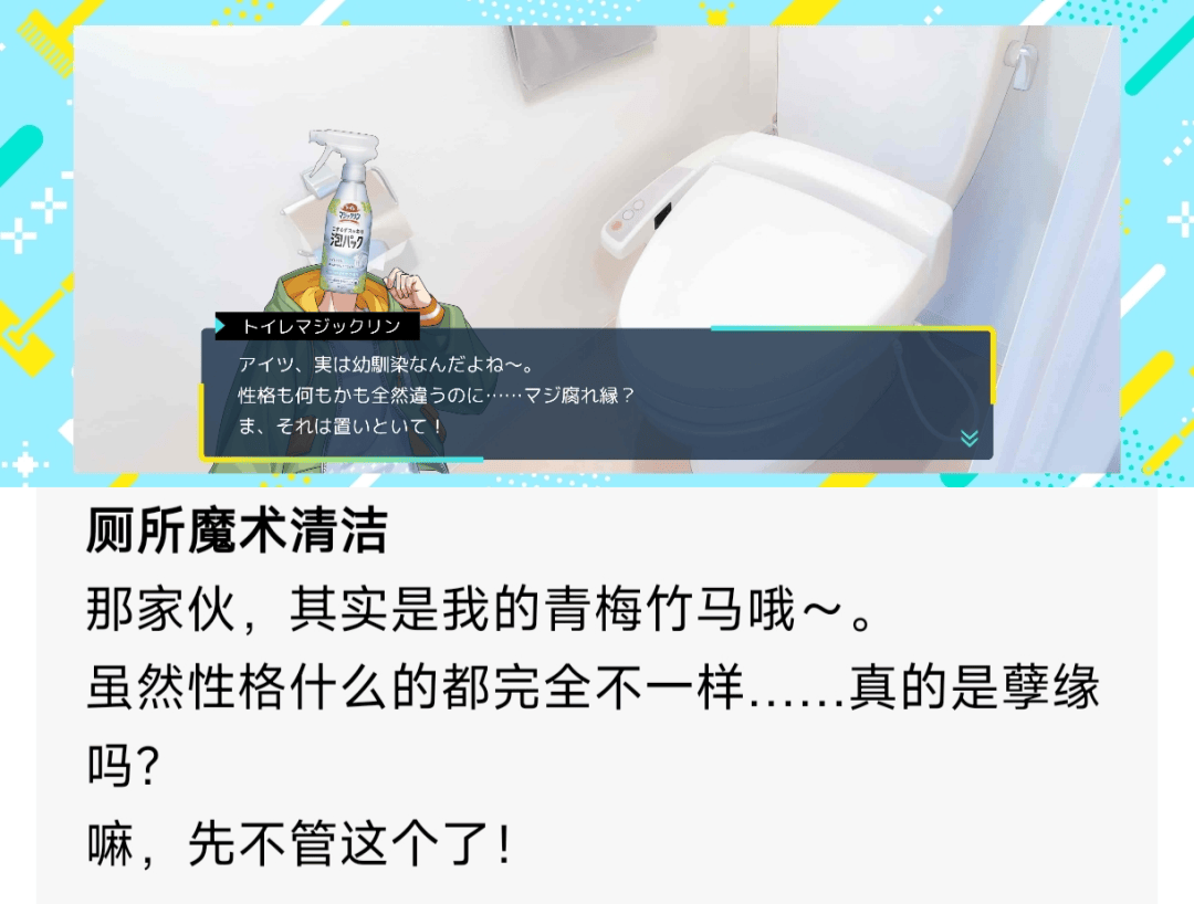 在清洁过程中,甚至都没有忘记植入定番的孽缘幼驯染,写剧本的人是真的打算把典中典进行到底了啊……
