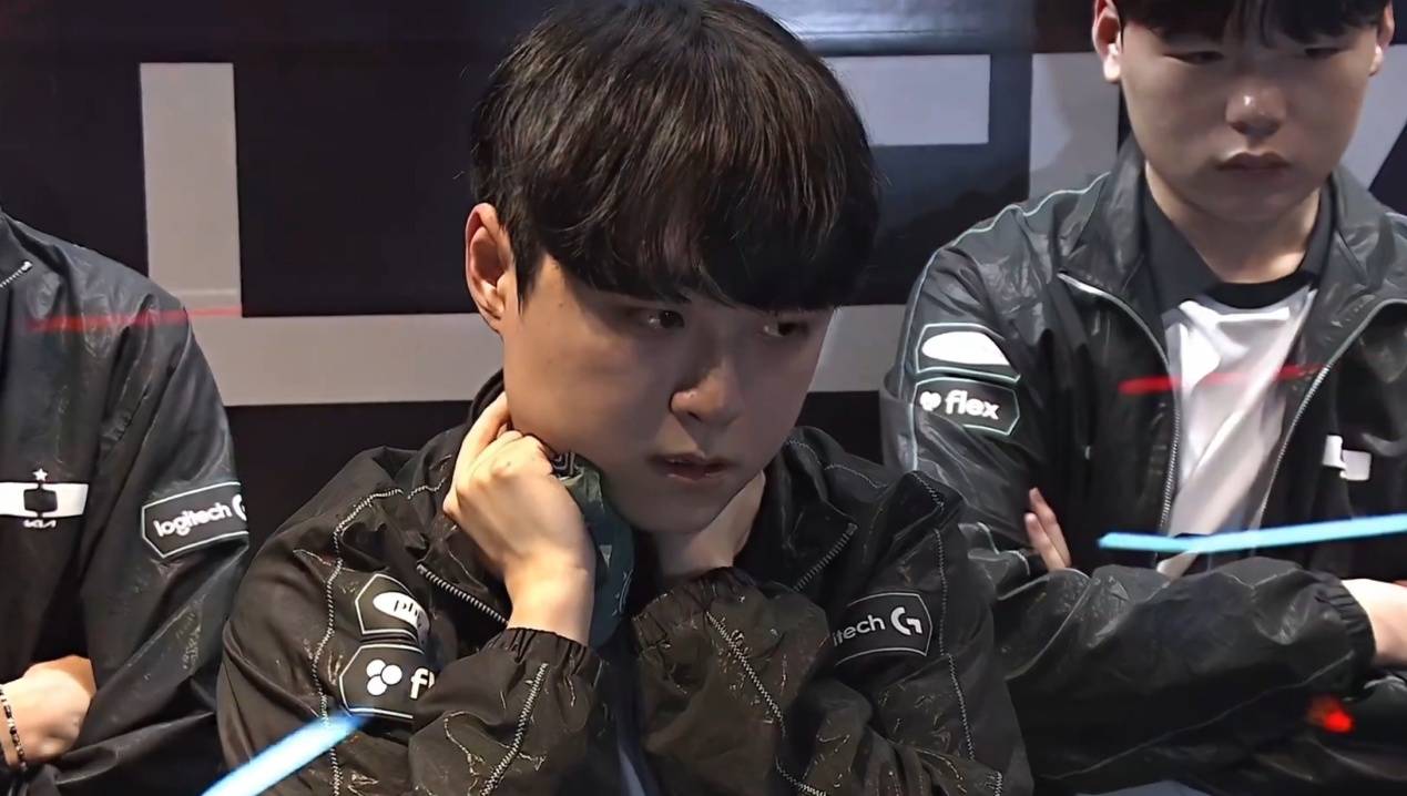 DK也顺利扳回一分,而当时比赛结束之后的直播流是给到了双方的休息室,一开始的画面还挺正常的,都是选手和教练之间的谈话和复盘,但之后的一个画面却让观众们相当惊讶,只见DK辅助Career在一个单独的房间里面放声痛哭,教练cvMAX则站在他面前。