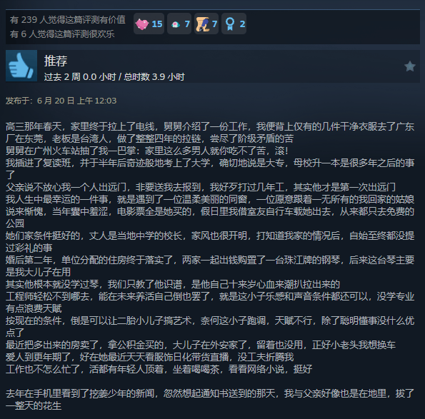 拉到下方的评论区,葡萄君发现,玩家们的留言主要分为两类:一是为游戏剧情叫好,认为其描写得真实感人;二则是大段的「小作文」,分享自己对童年和家乡的回忆。