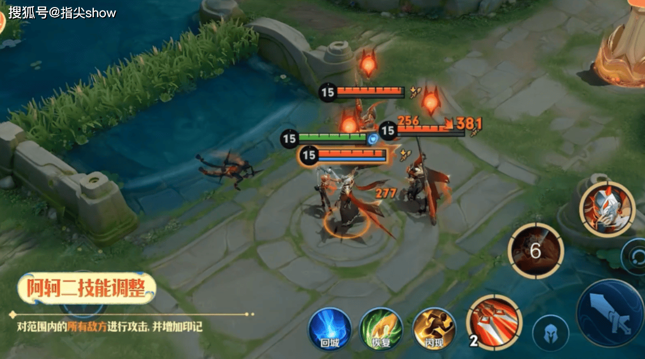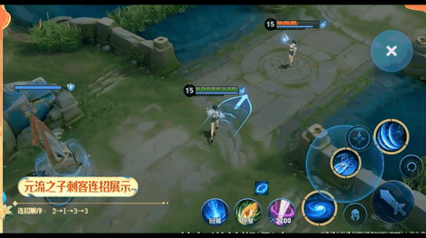 二技能是个位移,可穿墙,终点附近有人会造成多段穿梭伤害,这个伤害是范围伤害,自己有回血的同时,还会附带斩杀伤害,如果122连续使用,伤害会更高,这是元流刺客的核心技能。