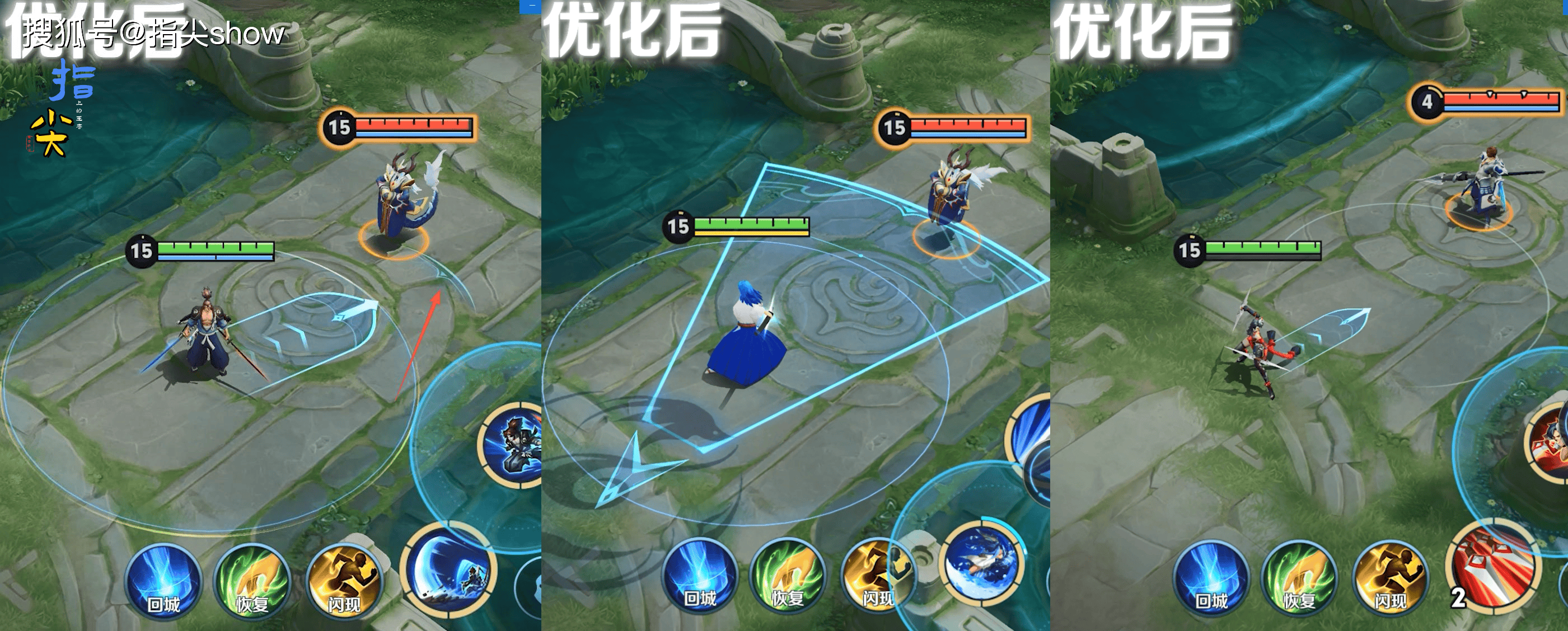 目标在自己身前,以前的连招会下意识往后撤退一步,因为只有拉开一点距离才能命中,本次调整之后,敌人只要在自己的身前,无论如何都能命中,大大提升了英雄的强度,以及连招的流畅性。