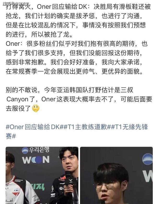 这场比赛结束之后,dk战队的辅助选手在休息室喜极而泣,看得出来压力非常大,后面的两局比赛dk战队也是稳扎稳打,最终完成了让二追三,成功淘汰了T1战队,进入到了败者组的决赛。这也是十年以来,T1战队第一次被打出让二追三的对局。上一次的时候还是2016年lck的夏季赛季后赛,kt战队让二追三击败了skt战队。在赛后采访中,T1战队的主教练和打野选手oner也是公开道歉,并且表示在资源争夺中出现了很多的意外,最终导致了比赛的失利。确实在有滑板鞋的情况下,野区资源被抢,这完全不应该出现。