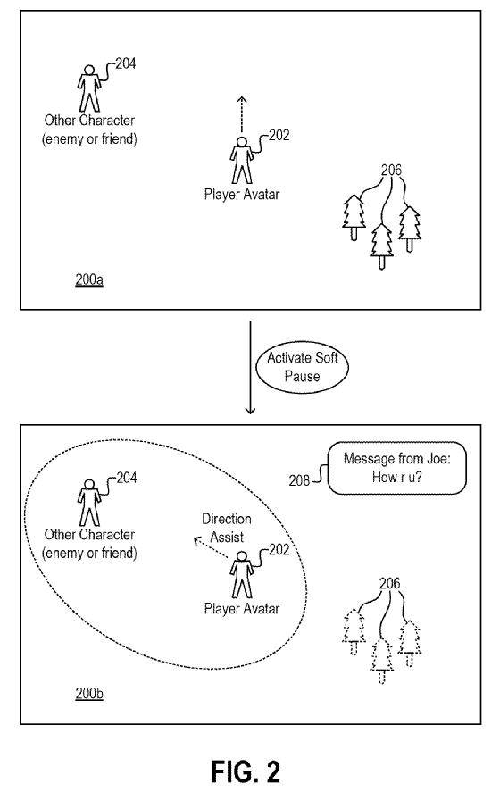 官方在专利中详细说明了多种实现方式,不同类型的游戏可以据此开发专属的“软暂停”功能。在激活该状态后,游戏系统会采取一系列动态调整措施来辅助玩家。