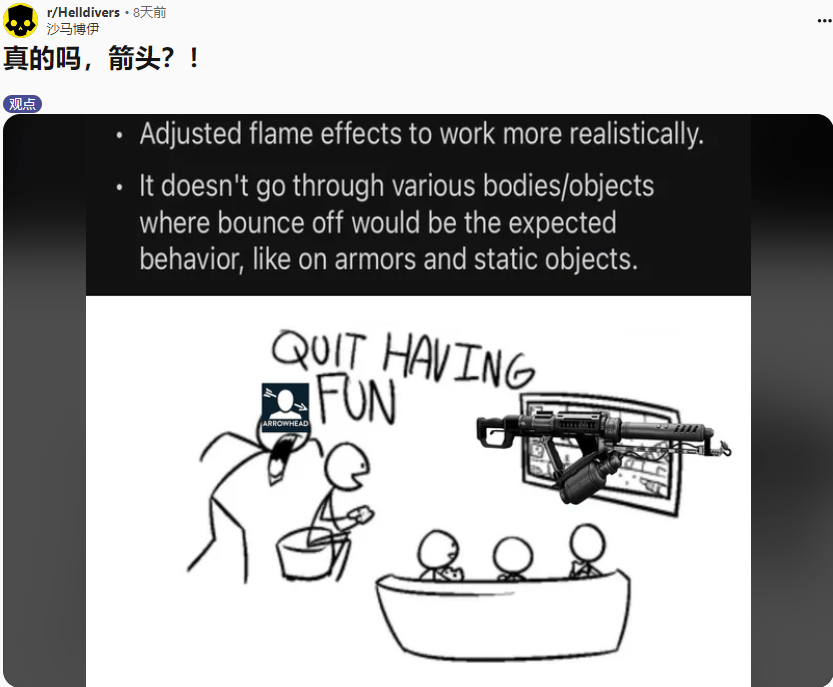 箭头修BUG本身并无大碍,问题在于《绝地潜兵2》目前的游戏难度极不合理,高难度下敌人过度强势,玩家可用的武器却越来越少,官方对削弱玩家的执念令人难以理解。