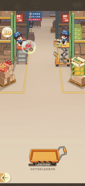 生鲜超市则采用接物进货玩法,玩家完成进货和上架操作后,商品会自动售卖,在基础收入之上进一步提升收益。