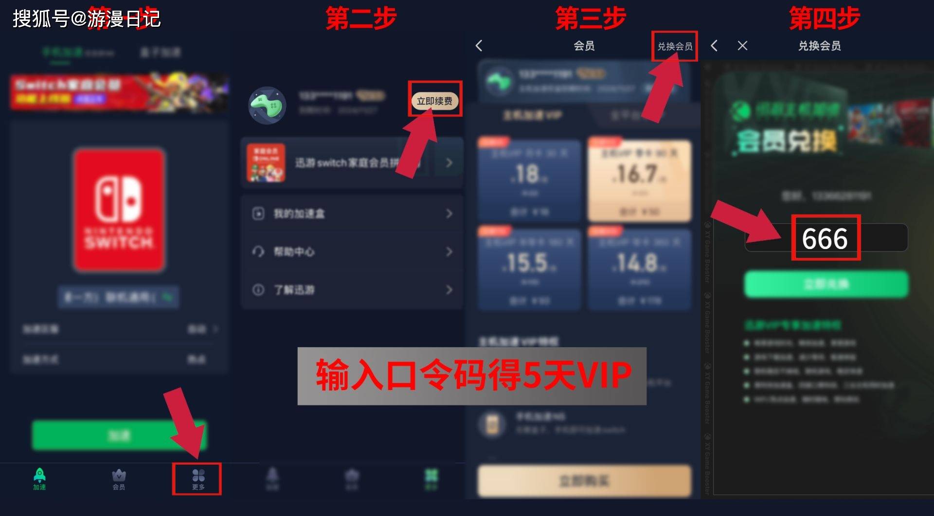 有些兄弟们裸连网络下载数字版游戏或者联机可能会遇到卡顿、下载速度缓慢的棘手问题,对此不妨试试迅游主机加速app,也是老谈一直在用的一款加速软件。只需手机端安装app,搜索要加速的游戏或者Switch商店与下载加速,按照弹出教程修改代理服务器即可一键加速。白嫖时长方法也很简单,在会员页右上角的兑换会员处输入老谈就能直接白嫖5天vip加速时长,白嫖来的加速时长无论是下几款游戏,还是撸几天联机对战都是个不错的选择。