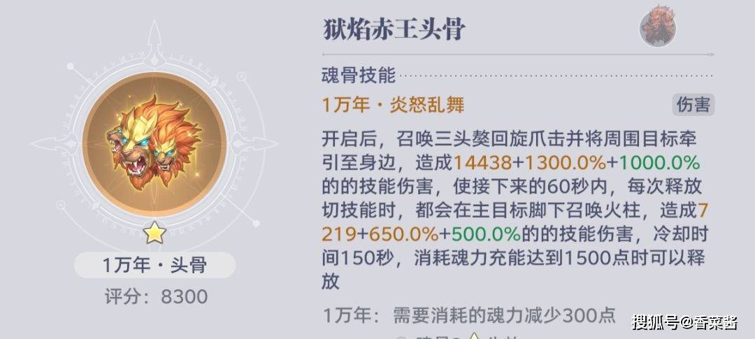 魂骨标配:头骨(狮子头/泰坦头,3星优先)