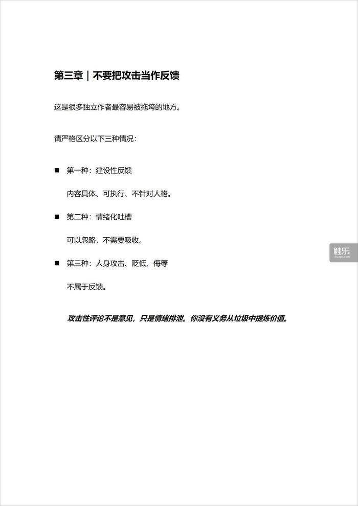 因此,鬼鬼所写的手册有一个章节特意提到“不要把攻击当作反馈”