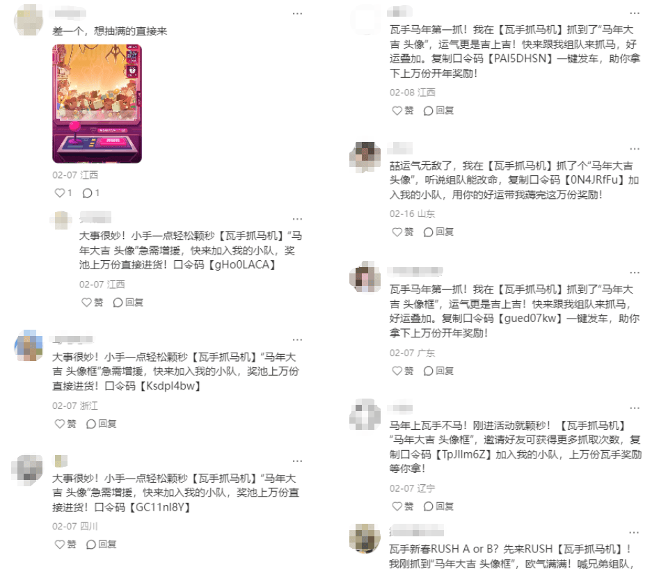 不过管中窥豹之后,最终你能感受到的现象就是,瓦手在它本身已经有很强传播力的基础上,又成了年轻人之间的一种社交货币,甚至会在春节被作为破冰暗号,迅速把人连接在一起。