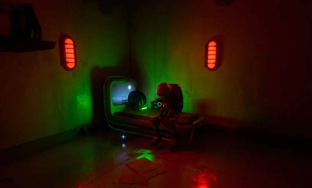 随着老旧的电子荧幕显示加载结束,幽暗的房间出现在我们眼前。目光所及的空间里,只有几个微弱的红色信号灯,光线不足的情况下找路有点困难,还好自带的头灯可以提供有限的光源。