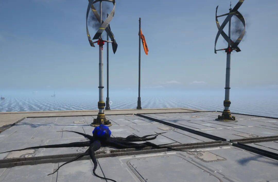 想要为船只动力供给,给整个船坞提供电力,就需要更大功效的发电机。随着逐步探索,我们终于来到了船坞的顶部,船坞处于海洋之上,四周除了海水,空无一物。在这里,可以找到破损了的风力发电机,只需要修复他们,就可以产生电力。