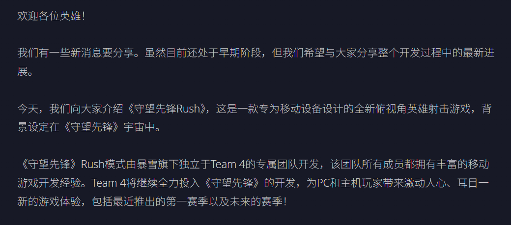 另一方面,《守望先锋》端游刚经历了一场重组与品牌重塑,例如不仅名称正式去掉了后缀“2”,最近新赛季还一口气出了五个新英雄,同时高调宣布了未来的更新路线。