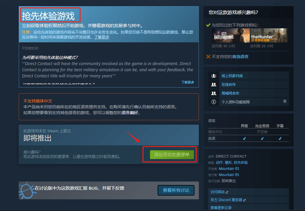 (5)下拉该界面,因为目前游戏还没有上线,大家现在可以添加至愿望单,等到游戏开启抢先体-验就可以下载游戏啦。