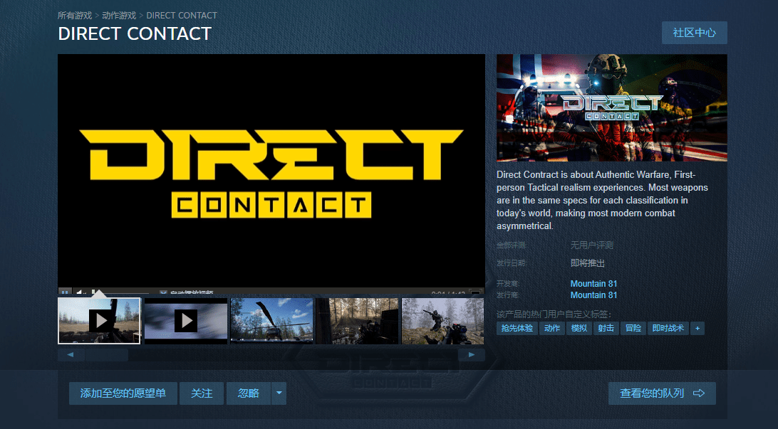 本作将于12 月13日在Steam平台开启抢-先体-验,因此玩家们到时候前往Steam平台即可下载游玩到这款射击游戏,《DirectContact》不仅体现了真实战争的精髓,而且还提供给玩家们第一人称战术现实主义体验,让大家沉浸在现代战斗的中心。