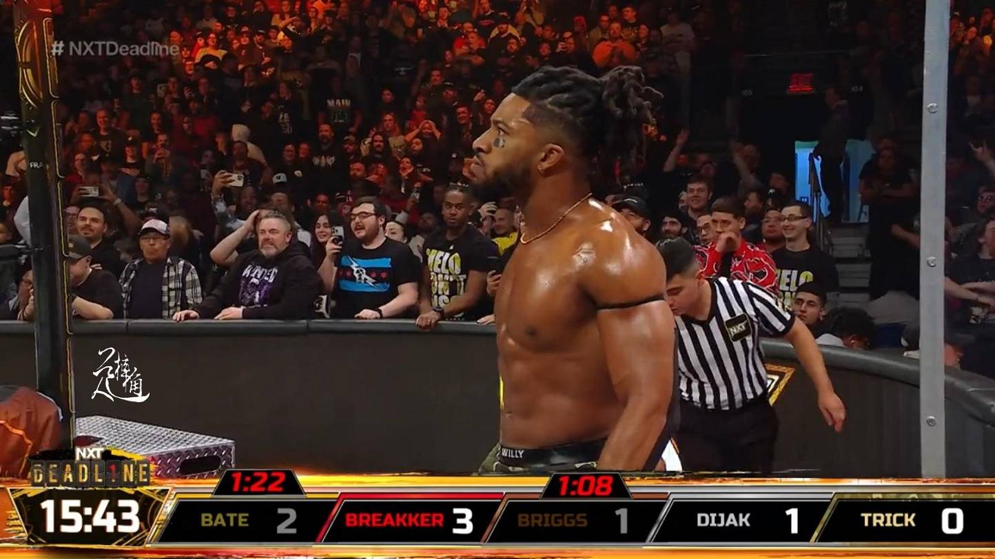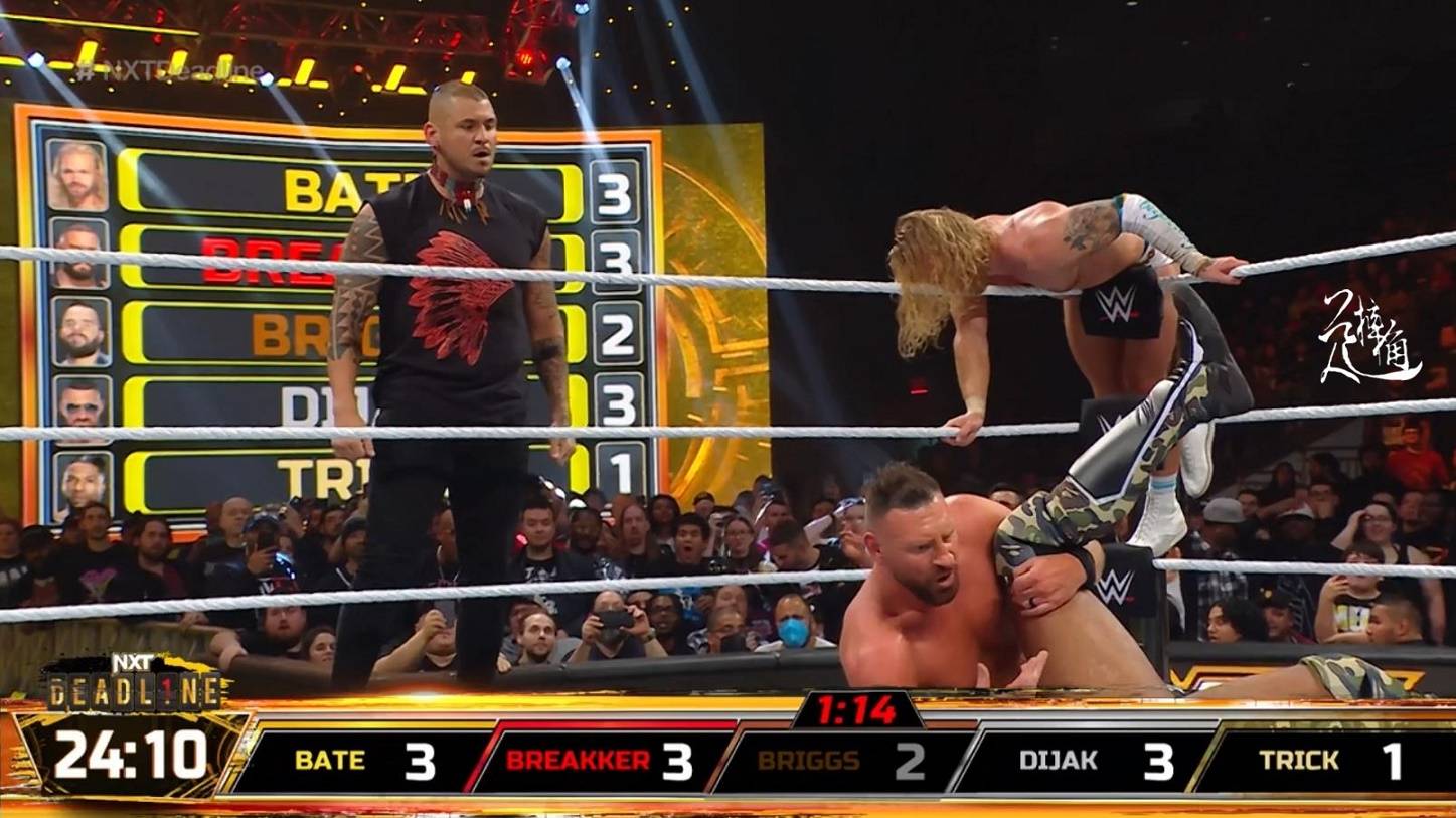 泰勒贝特(Tyler Bate)与大杰克(Dijak)已经追平布朗 布雷克的比分,特里克还只有1