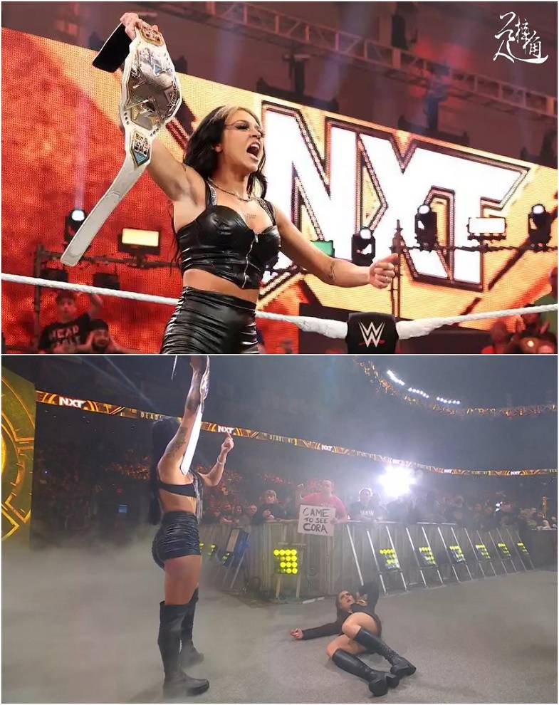 除此之外,正赛打头阵的NXT北美冠军争夺战中,多米尼克在亲爹雷尔的见证下,将腰带无争议输给了龙李(Dragon Lee)