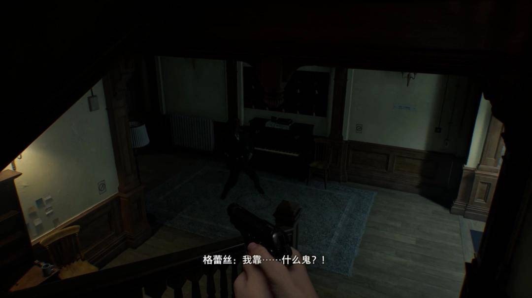 作为此前从来没有接触过生化危机事件的羔羊,格蕾丝在最初接触丧尸时的表现,完全可以作为恐怖片的样板戏——走不远、跑得慢,遇事以逃为主,以躲为辅。遇上风吹草动便一惊一乍大喘气,Jump Scare时少不了失声惊叫,举枪瞄准时准心总是抖成糠筛。