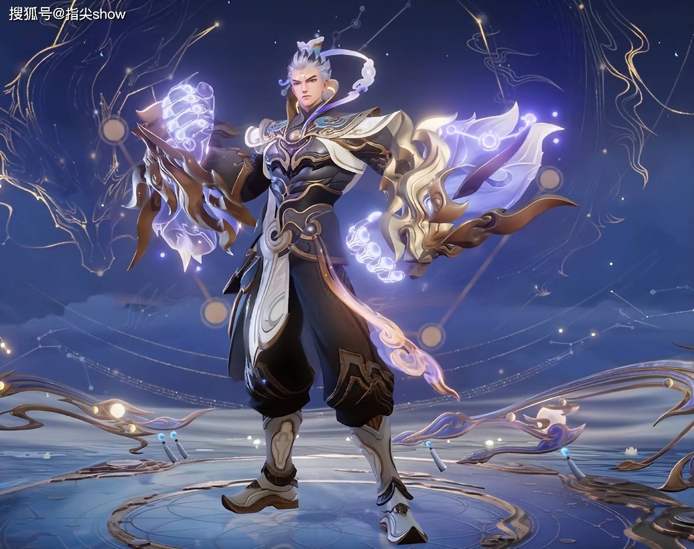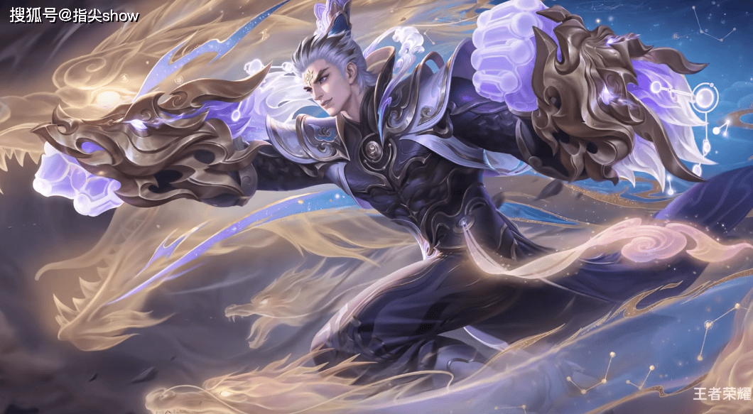 皮肤以国风神话传说为主题,以亢金星君-亢金龙为原型,将达摩设计成一位能镇守九天星野,也能护佑凡尘安稳的星宿神将,海报的动作倒是能看到达摩的特点,武装起来的两只大拳头,动作似乎也很熟悉,风格方面一度让我想到了曜的苍雷引。